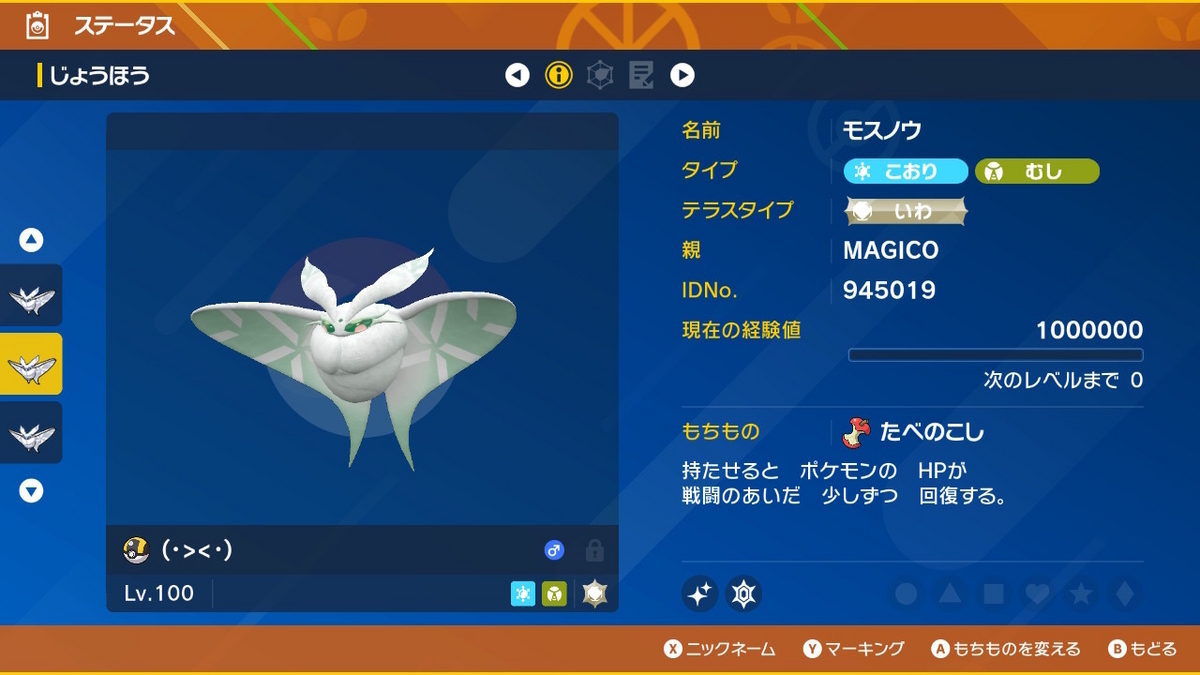 何度かお話ししていたように自分はモスノウが本当に大好きで9世代でもモスノウが無事に内定してくれてとても嬉しく思っています!そして、テラスタルのシステムがモスノウの特性と相まってモスノウ史上最高の世代になっている今だからこそモスノウに対して色んな可能性を導き出せているのではないのかなと思います。じゃあこの先テラスタルの使用がなくなり、モスノウとマッチしていないシステムがきたらモスノウを手放すのかと言われたらもちろんそんなことは断じてありません。